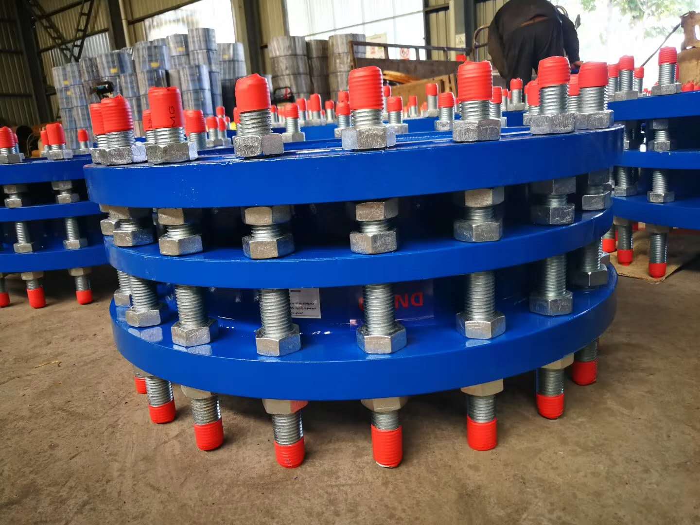 双法兰传力伸缩接头又叫双法兰传力接头,是在法兰松套补偿接头的基础上增设法兰短管及传力螺杆而成,这类型的补偿接头与松套补偿接头和松套限位补偿接头不同的是它的补偿量是指在安装及拆卸过程中的调节量 ,一旦将所有的螺母拧紧,它是刚性连接的,可以传递轴心力,从而保护阀门、泵等设备。双法兰传力伸缩接头适用两边都是法兰的连接方式,调节产品两端与管道或法兰的安装长度,安装和焊接完毕后,对角依次均匀拧紧压盖螺栓,使其成为一个整体,并有一定的位移量 ,方便安装维修,可根据现场尺寸进行调整。在工作时可以把轴向推力传递至整个管道。
